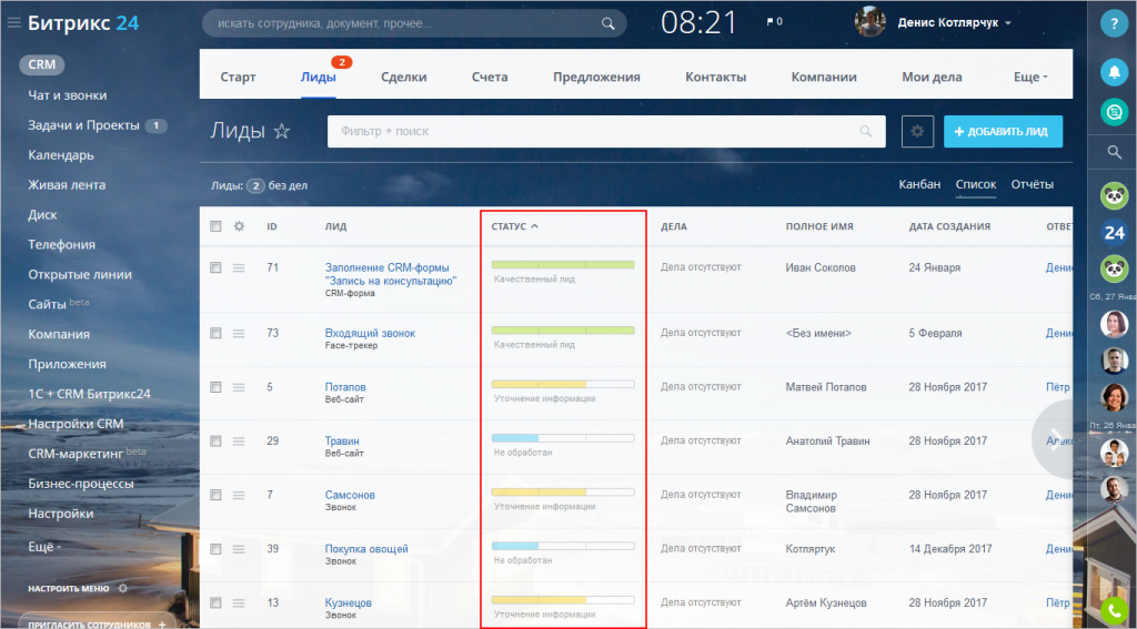 Лид может оказаться некачественным - к примеру, человек позвонил и ошибся номером, или просто этот клиент вам не подходит. В этом случае вы переводите лид в статус некачественного и это учитывается при анализе работы с клиентами.